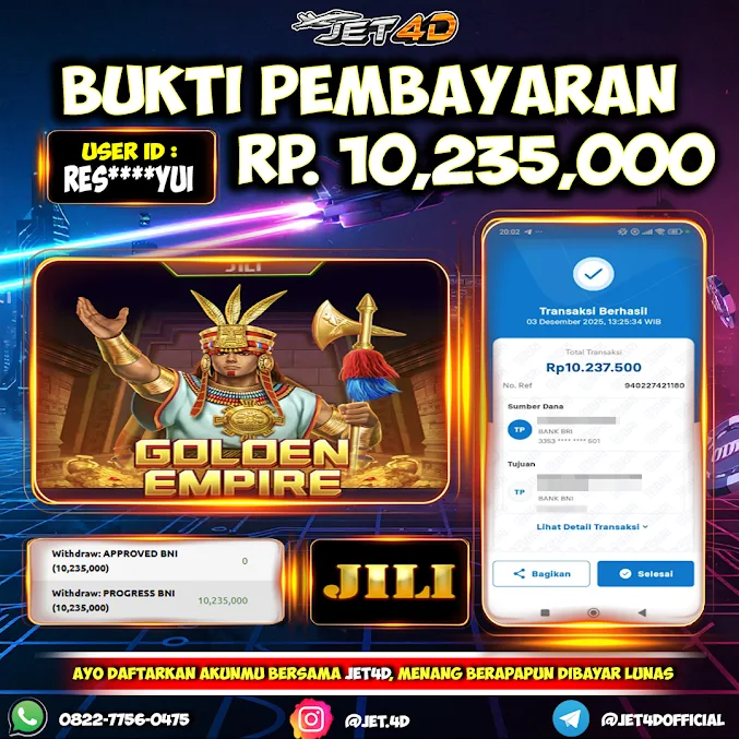 JET4D SLOT Golden Empire Selamat Kepada Member Setia Atas Withdraw Rp 10.235.000Hari ini. List member yang sebelumnya mendapatkan withdraw besar bisa cek Disini dan di LINK ini.pelanyanan nonstop dan profesional