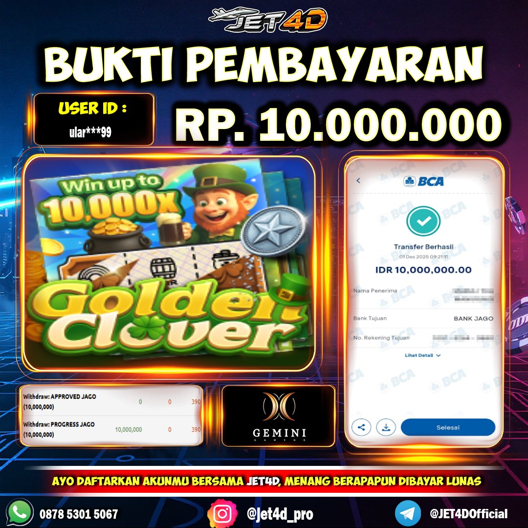 JET4D MODAL TIPIS MENANG SADIS Selamat Kepada Member Setia Atas Withdraw Rp 10.000.000 Hari ini. List member yang sebelumnya mendapatkan withdraw besar bisa cek Disini dan di LINK ini.pelanyanan nonstop