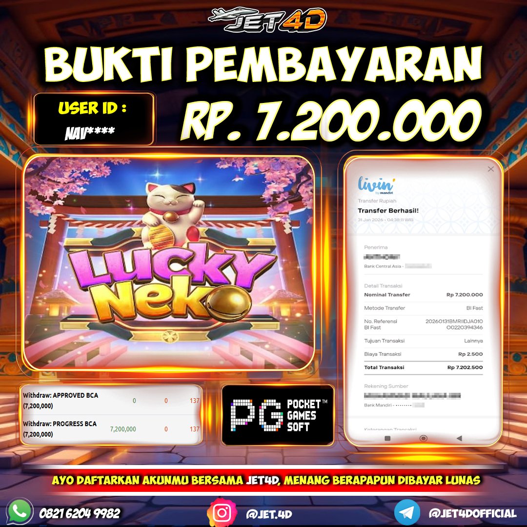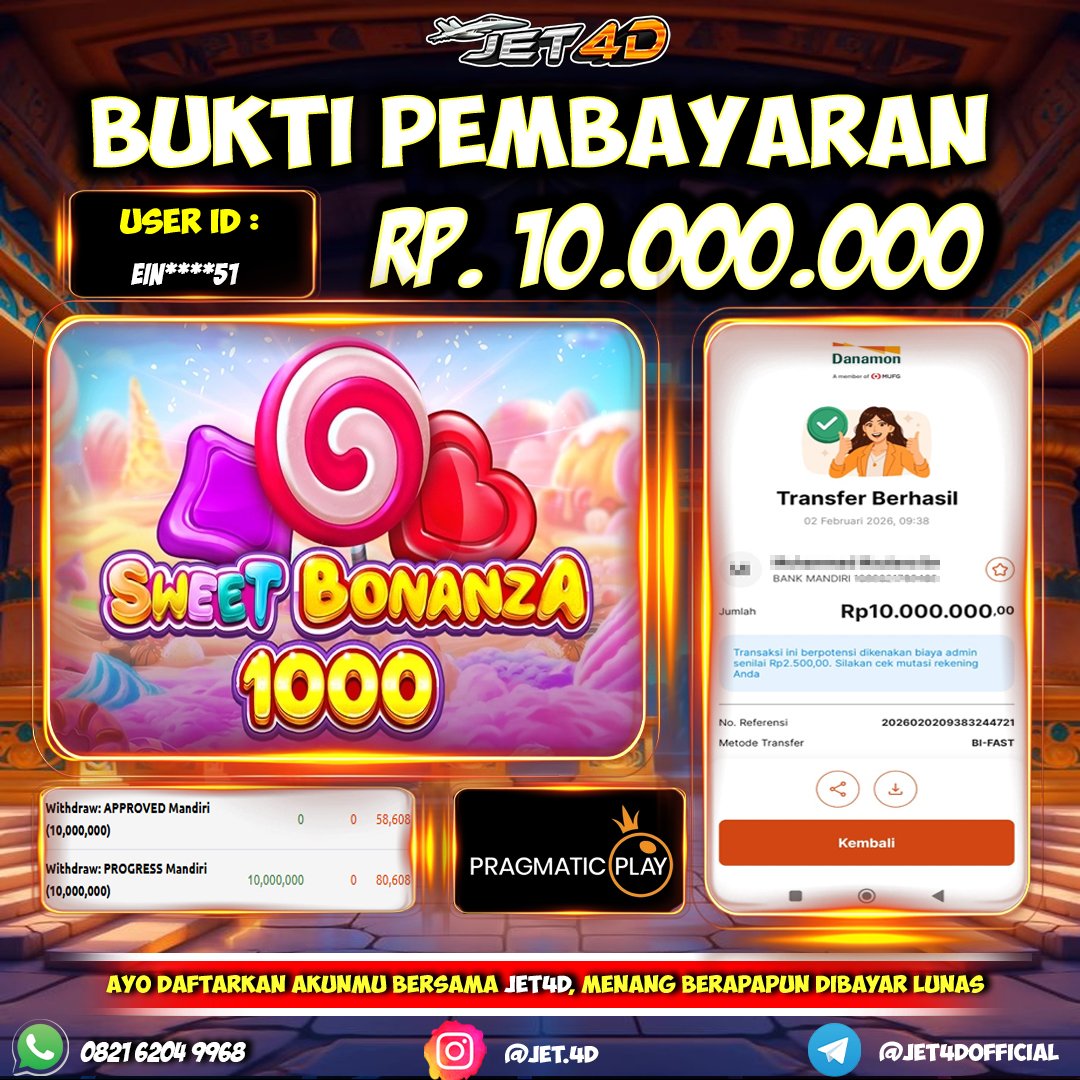 JET4D DEPO SEKALI WEDE BERKALI KALI Selamat Kepada Member Setia Atas Withdraw Rp 7.200.000 Hari ini. List member yang sebelumnya mendapatkan withdraw besar bisa cek Disini dan di LINK ini.pelanyanan