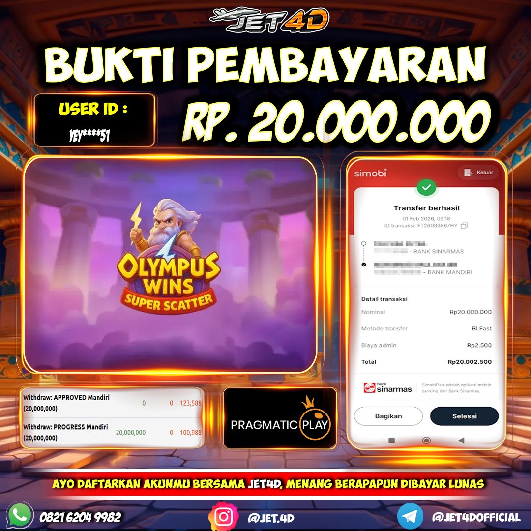 JET4D SAMBARAN ZEUS AUTO WEDE Selamat Kepada Member Setia Atas Withdraw Rp 20.000.000 Hari ini. List member yang sebelumnya mendapatkan withdraw besar bisa cek Disini dan di LINK ini.pelanyanan nonstop