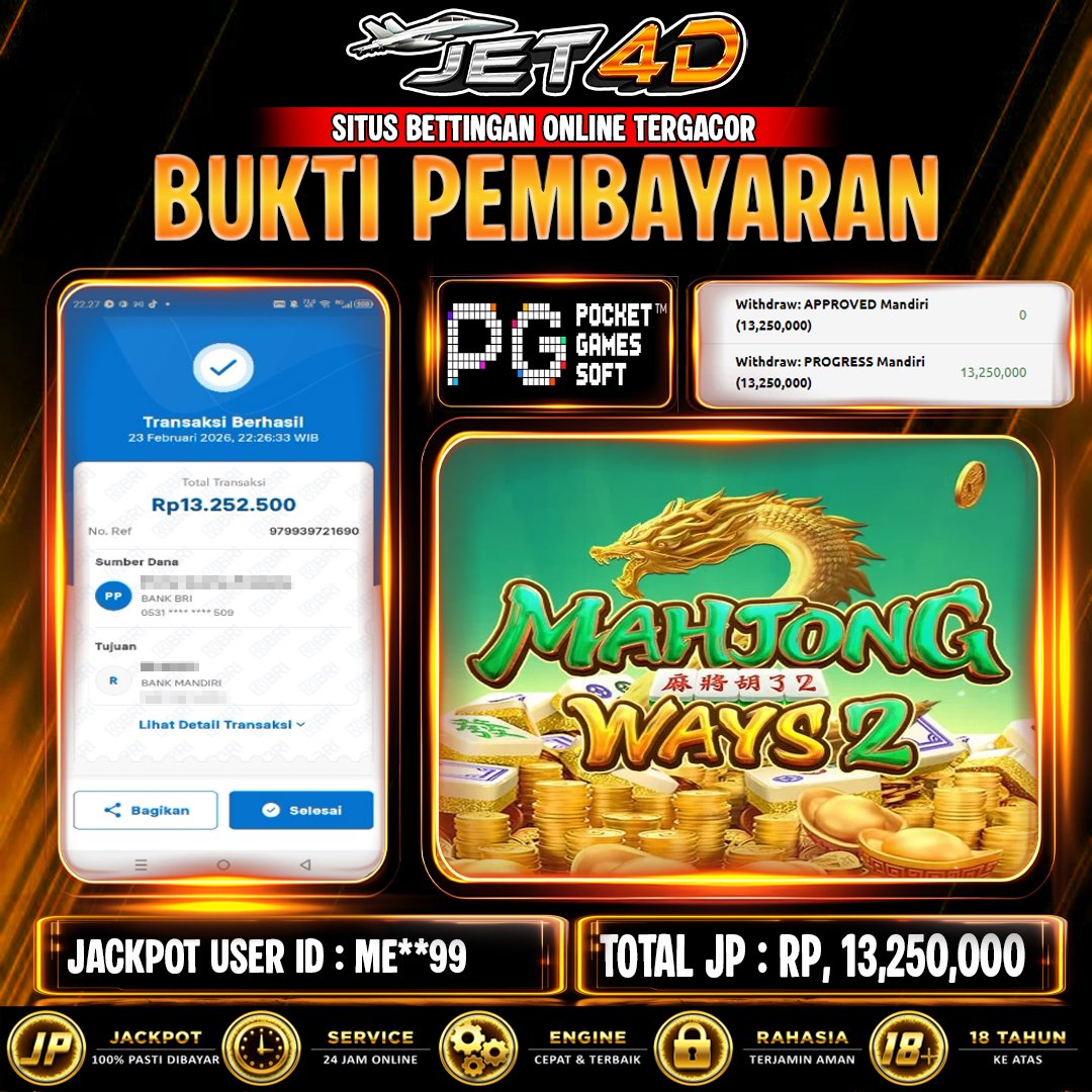 JET4D JACKPOT SLOT MAHJONG WAYS2 Selamat Kepada Member Setia Atas Withdraw Rp. 13.250.000 Hari ini